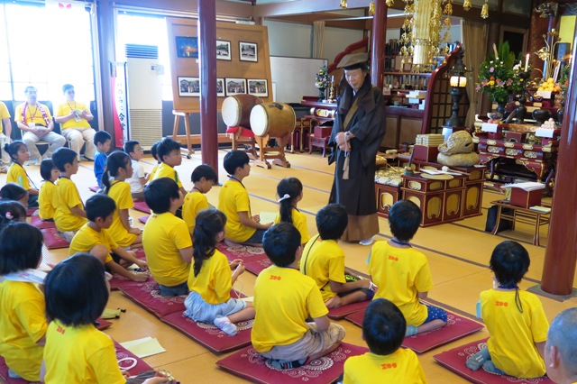 2015年08月26日(水) 住職ブログ 第4回イキイキ元気子どものつどい・後編 最後は本堂に再び移動し閉会式。はじめに院首よりお話。今回、始めて作務行として行った掃除について、その意義をわかりやすくお話いただきました。子どもたちも熱心に聞いているようでした。