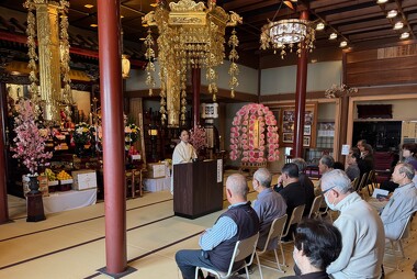 はじめに日蓮聖人のご遺徳に対しお参りの檀信徒と共に報恩法要を営みました。